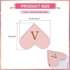 Initial V Corner Bookmarks, Heart Shape Leather Book Marks Markers, Pink