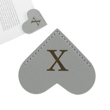 Initial X Corner Bookmarks, Heart Shape Leather Book Marks Markers, Gray
