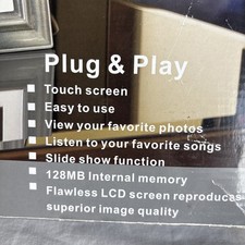 The InVion 8" Digital Picture Frame is a sleek and modern device with a touch screen display and remote control for easy navigation. It features a 128MB internal memory capacity, allowing you to store and view your favorite photos with ease. MP3 player to add music . Compatible with various external memory cards, this digital photo frame is a versatile and convenient way to showcase your memories in style. There is cosmetic damage to the box but all contents are in new condition.