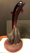 Incredible Find, Beautiful J.Boiros Deep Red 10.5" Kalonite Dolphin Sculpture Limited Edition, Signed, Numbered 54/950, Dated 1991. Deep Red Glossy Finish on Leaping Dolphin on mate finish base.