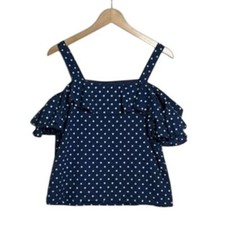 J. Crew Women's Navy Polka Dot Ruffle Off The Shoulder Blouse Size 6