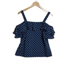 J. Crew Women's Navy Polka Dot Ruffle Off The Shoulder Blouse Size 6 In good preowned condition Measurements shown in pictures Very Fast Shipping: We ship within One Business Day!