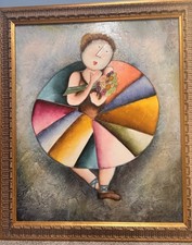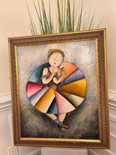 The Vintage J. Roybal Oil painting of a Ballerina showcases the intricate and elegant artistry of oil painting. This large-sized artwork features a graceful ballerina as its subject, captured in a rich and detailed depiction. The painting is framed and signed by the artist, adding to its authenticity and value as a timeless piece of art. This painting is a stunning addition to any art collection or a beautiful statement piece for any home décor. Frame 28”x24.0’. There is a small split in the paper covering on the back. Otherwise , in excellent condition.