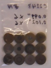 Listed are used valve adjusting shims for Jaguar XJ6 4.2, XJ12, 5.3 engine. from 1987 and older. The sizes are 0.102" x 6, 0.099" x 6. The package contents the total of 12 shims. Please note that measurements may vary +/- 0.001", due to some half sizes. Contact me for a specific size or for any questions. Thank You.