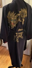 Japanese Kimono Robe Japan Embroidered Foo Dogs Vintage 80’s