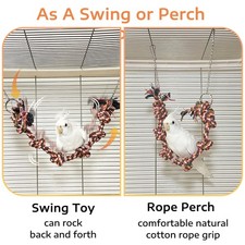 Sturdy Knotted Rope: This parrot swing rope toy features reinforced knots to prevent loosening and fraying, and it doesn't matter even if your parrot loves to chew. The textured surface provides extra grip for the birds.