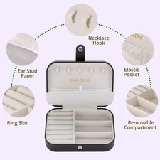 Do you afraid of losing your beloved jewelry while traveling?. 【Unique&Simple Design】This mini double jewelry box is made of PU leather which is waterproof and easy to clean. And the button design is convenient to open and close.