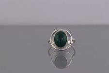 John Hartman Anglo Sterling Silver Oval Green Malachite Band Ring 925 Sz: 5