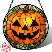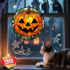 JOSUMALY Halloween Evil Pumpkin Stained Glass Window Hanging Decor