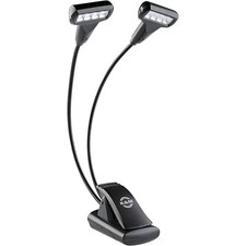 The K&M 12273 Music Stand Double 4 LED T-Model FlexLight is a smart, practical light for musicians who need to see their sheet music. Two bendy goosenecks hold each light head, so you can point them wherever you want—just on one spot or across the whole page.