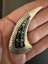 K.Y. Stamped Silver Brooch Pin Black Oval Stones Asymmetrical Unisex
