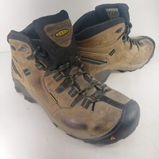 Upgrade your work safety with these Keen Dover Men's Work Boots. Designed with electrical hazard safety standards, these boots will protect you from accidents at work. The composite toe offers added protection without adding weight, making them comfortable for all-day wear. The arch stability provides support and reduces fatigue, making these boots ideal for long shifts. The waterproof feature ensures your feet stay dry, and the medium width makes them versatile for any foot type. Invest in your work safety with these Keen Dover Men's Work Boots. Boots are in Excellent Preowned Condition with no stains or blemishes. Soles show soiling but very minimal wear.