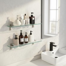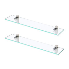 KES 24" Tempered Glass Bathroom Floating Shelf Brushed Nickel Bracket 8mm Thick
