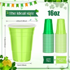 KesaPlan 100PCS 16 OZ St. Patrick's Day Plastic Cups, Light Green &