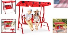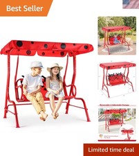 Kids Porch Swing with Adjustable Canopy & Safety Belts - Adorable Ladybug Design