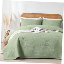 King Quilt Bedding Set Lightweight Soft Sage Green Bedspread Coverlet with Leaf Pattern,Ultrasonic Microfiber Bed Cover Set for All Season 3 Pieces (1 Quilt, 2 Shams). Premium Material: Soft microfiber fabric on both sides and polyester filling make the cal king quilt bedding set ultra-soft, breathable, skin-friendly and noiseless.