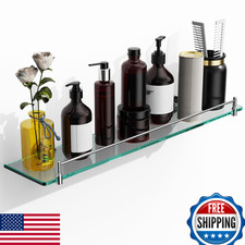 KOCOK 24" Glass Bathroom Shelf Chrome Polished Floating Wall Shelves Rectangular