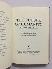 014496 Krishnamurti, J And Bohm, J. The Future Of Humanity. A Conversation Harper And Row 1986 San Francisco 98 Pages. Last Few Pages Water Stained On Corner BINDING - Hardcover. Jacket - Fair. English 8vo - over 7¾ - 9¾" tall 1st Edition CONDITION - used/fair.