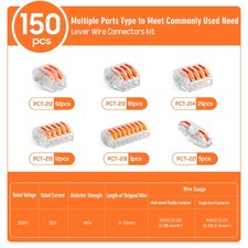 Kuject 150PCS Lever Wire Nuts Connectors Kit 2/3/4/5/8 Conductor additional preview