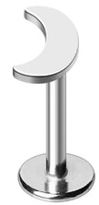 Labret Monroe Flat Back Piercing with Crescent Moon Top, 316L...