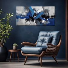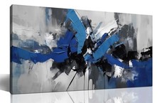 Large Abstract Wall Art for Living Room Canvas Wall Art Black 20L" x 40W" Blue