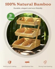 3 Tier Large Bamboo Fruit Basket for Kitchen Counter with 2 Banana Holders, Kitchen Countertop Organizer with Protective Mats, Tiered Fruit Bowl for Bread Snack Veggies with Dividers. [Spacious 3-Tier Capacity] This large fruit holder easily fits bulk produce, bread, or snacks.