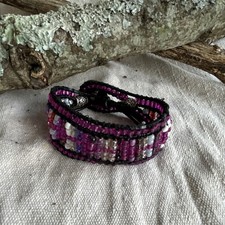 Large Handmade Bead Wrap Bracelet, Purple Multicolor, Button Closure, 8 Inch additional preview