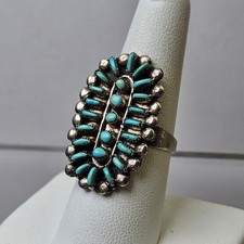 Large Vintage Sterling Silver Petite / Needle Point Turquoise Cluster Ring Zuni