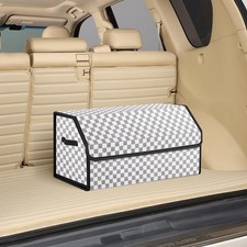 Large White Grid Leather Foldable SUV Sedan Car Trunk Storage Organizer Box