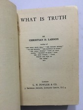 014869 Larson, Christian D. What Is Truth L. N. Fowler And Co 1912 London 191 Pages, Modern End Papers. Spine Reinforced. External Wear BINDING - Hardcover. English 8vo - over 7¾ - 9¾" tall 1st Edition CONDITION - Used/ Good.