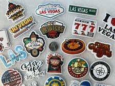 The product is a set of 25 multicolor stickers featuring various designs related to Las Vegas, Nevada. These stickers can be used for decorating various items such as laptops, water bottles, or any other personal belongings. The Las Vegas theme adds a touch of fun and flair to everything they are applied to, making them a great addition for those who love the city or are fans of travel memorabilia. See size as compared to coin. Coin not included.