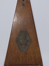 The late 19th century Maelzel metronome is an original antique musical instrument manufactured in France before 1930. Known for its precision and craftsmanship, a Maelzel metronome is a valuable collectible for antique lovers and musicians alike. This unique piece showcases the quality and craftsmanship of the time period, making it a sought-after item for those interested in musical instruments from the past. Really nice condition. Some wood chipping at top on door.