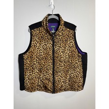 Lauren Ralph Lauren Leopard Print Quilted Puffer Vest Womens 3X Plus Brown Black
