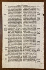 The work from which this leaf was extracted, known as Holinshead's Chronicles, is a rare account of English history written during the reign of Queen Elizabeth I. Shakespeare based many of his plays on this edition of Holinshead, including Richard II, Richard III, Macbeth, Henry IV (parts 1-2), Henry V, Henry VI (parts 1-3), Henry VIII, and Cymbeline.