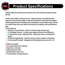 Keep your favorite book, Bible, or planner protected in style with this elegantleather zippered cover. Leather Bible Cover Book Cover Planner Cover with Handle and Back Pocket (Small). Small Leather Bible or Planner Cover – Zippered Case w/ Handle & Pocket.
