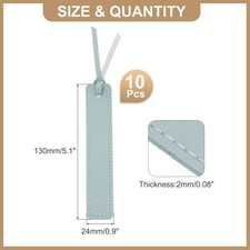 The leather bookmark can be used on a variety of different occasions, such as book reading, studying, writing a diary, and more. Suitable to use in textbook, journal, storybook and more. They can help you turn to the page you pause last time quickly. Good choice to elevate your reading experience.SpecificationMaterial: PVC Leather, SuedeColor: BlueTotal Size: 130 x 24 x 2mm / 5.1 x 0.9h x 0.08 inch (L*W*H)Package Content: 10 x BookmarksAdvantageOur bookmarks are made of leather materials, it is soft and comfortable to touch. It is also easy to clean, as it doesn't absorb water. These bookmarks add a touch of elegance and vintage charm to your reading. Edge string design makes you easy to find and draw your attention.InstructionEasy to Use, simply place the bookmark in the book after reading and easily pick up where you left off.