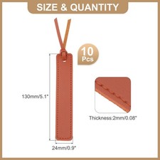 The leather bookmark can be used on a variety of different occasions, such as book reading, studying, writing a diary, and more. Suitable to use in textbook, journal, storybook and more. They can help you turn to the page you pause last time quickly. Good choice to elevate your reading experience.SpecificationMaterial: PVC Leather, SuedeColor: BrownTotal Size: 130 x 24 x 2mm / 5.1 x 0.9h x 0.08 inch (L*W*H)Package Content: 10 x BookmarksAdvantageOur bookmarks are made of leather materials, it is soft and comfortable to touch. It is also easy to clean, as it doesn't absorb water. These bookmarks add a touch of elegance and vintage charm to your reading. Edge string design makes you easy to find and draw your attention.InstructionEasy to Use, simply place the bookmark in the book after reading and easily pick up where you left off.