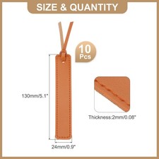 The leather bookmark can be used on a variety of different occasions, such as book reading, studying, writing a diary, and more. Suitable to use in textbook, journal, storybook and more. They can help you turn to the page you pause last time quickly. Good choice to elevate your reading experience.SpecificationMaterial: PVC Leather, SuedeColor: BrownTotal Size: 130 x 24 x 2mm / 5.1 x 0.9h x 0.08 inch (L*W*H)Package Content: 10 x BookmarksAdvantageOur bookmarks are made of leather materials, it is soft and comfortable to touch. It is also easy to clean, as it doesn't absorb water. These bookmarks add a touch of elegance and vintage charm to your reading. Edge string design makes you easy to find and draw your attention.InstructionEasy to Use, simply place the bookmark in the book after reading and easily pick up where you left off.