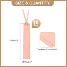 The leather bookmark can be used on a variety of different occasions, such as book reading, studying, writing a diary, and more. Suitable to use in textbook, journal, storybook and more. They can help you turn to the page you pause last time quickly. Good choice to elevate your reading experience.SpecificationMaterial: PVC Leather, SuedeColor: PinkTotal Size: 130 x 24 x 2mm / 5.1 x 0.9h x 0.08 inch (L*W*H)Package Content: 10 x BookmarksAdvantageOur bookmarks are made of leather materials, it is soft and comfortable to touch. It is also easy to clean, as it doesn't absorb water. These bookmarks add a touch of elegance and vintage charm to your reading. Edge string design makes you easy to find and draw your attention.InstructionEasy to Use, simply place the bookmark in the book after reading and easily pick up where you left off.