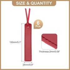The leather bookmark can be used on a variety of different occasions, such as book reading, studying, writing a diary, and more. Suitable to use in textbook, journal, storybook and more. They can help you turn to the page you pause last time quickly. Good choice to elevate your reading experience.SpecificationMaterial: PVC Leather, SuedeColor: RedTotal Size: 130 x 24 x 2mm / 5.1 x 0.9h x 0.08 inch (L*W*H)Package Content: 6 x BookmarksAdvantageOur bookmarks are made of leather materials, it is soft and comfortable to touch. It is also easy to clean, as it doesn't absorb water. These bookmarks add a touch of elegance and vintage charm to your reading. Edge string design makes you easy to find and draw your attention.InstructionEasy to Use, simply place the bookmark in the book after reading and easily pick up where you left off.