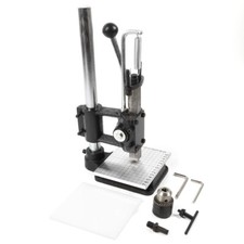 Features: 1. Low operating noise 2. With labor-saving spring 3. Safe operation, machine stamping instead of beating prongs with a hammer 3. With different accessories to achieve multi-function 4. Quick installation and easy operation 5. Max 160Kg of pressure (down force) to good stamping effect Applications: This machine is mainly aimed at leather handcraft workers, used for punching, pronging and stamping process, improving efficiency and working quality. Package: 1*Machine 2*Spanner 1*Drill chuck 1*PP plate 1*Aluminum plate with scale.