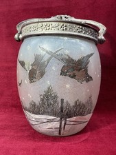 Legras Enamelled Jar Barrel Glass Biscuit Pot Landscape Birds