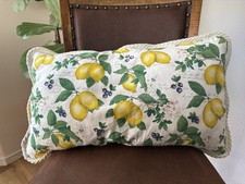 This Lemon Floral Rectangular Cotton Lumbar Pillow features a traditional style with a vibrant design of yellow, green, white, and black colors. The pillow, made of cotton, portrays a floral and nature pattern, perfect for adding a touch of fruit and vegetables theme to your living room or bedroom decor. Its rectangular shape and lumbar design make it a stylish and comfortable addition to your home. Handmade!
