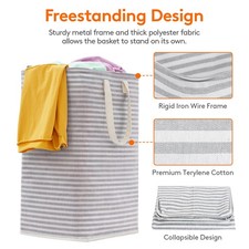 Simply stretch the dirty clothes hamper out and it will stand upright on its own.
