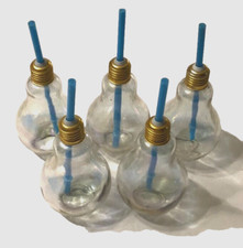 Light Bulb Clear Straw Cocktail Novelty Bar Party Vintage Drinking Glass Lot 5