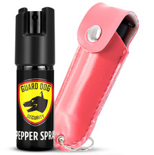 Light Pink Personal Defense Pepper Spray OC-18 1/2 oz - Leather Case Keyring