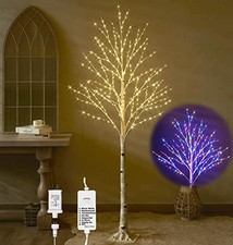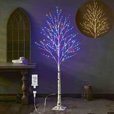 Lighted Birch Tree with 330L Warm White and Multi Color Fairy Lights 8 Functions 6FT, Faux Tree with Lights for Indoor Outdoor Christmas Party Easter Decoration. 【8 FUNCTIONS】: Totally 330L multi-color and warm white LED lights, designed with a contoller of 8 functions(Warm White, Multicolored, Twinkle, Slo Glo, Sequential, In Wave, Steady on, Off).