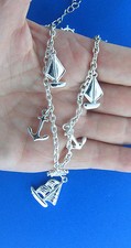 NWT Silver tone ocean charm necklace with lighthouse, sailboat, anchor, buoy and wheel dangles in 1" drop, up to 18" length.