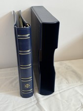 The Lighthouse Stamp Binders are a set of five dark blue binders with slipcases, designed for organizing and storing stamps. Made by LIGHTHOUSE in the United States, these binders are the latest versions. Used, but like-new condition. They would cost about $410. 00 if you bought them from Lighthouse. A good buy at less than one-third price.