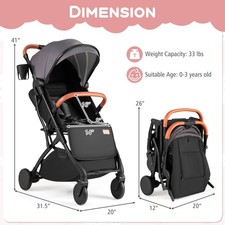 Lightweight Baby Stroller w/One-Hand Folding, Extendable Canopy, Storage Baske